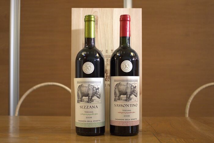 De Sassontino is afkomstig van een van de historische wijngaarden van het landgoed Casanova, waarvan de zandgrond een Piemontese interpretatie van Sangiovese biedt. De geuren zijn bloemig, met tonen van zwarte kersen en bessen. In de mond is hij beslissend en droog, met een hartige en omhullende afdronk.