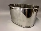 Grote vernikkelde kom in ovale vorm voor champagne- of wijnflessen met aan twee zijden gegraveerde tekst van Lily Bollinger en Napoleon Bonaparte.