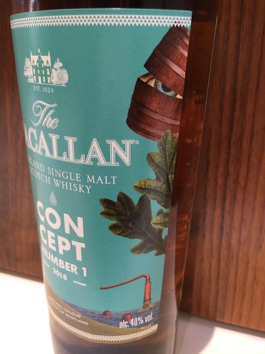 The Macallan Concept No.1 is de eerste uitgave van een serie limited edition whisky's, waarbij innovatie centraal staat zonder een zekere traditie uit het oog te verliezen. Verder is de productie van deze whisky geïnspireerd op surrealistische kunst en dit komt op de in de oogspringende verpakking tot uiting. De totale oplage van deze whisky betreft 84.000 flessen wereldwijd. Macallan Concept No.1 is amberkleurig en heeft een delicate geur waarin zoetigheden en kruiden samenkomen. Butterscotch, amandelen, kaneel en gember vormen de basis. De smaak is fruitig sinaasappel waarbij en citrus de boventoon voert. Licht kruidige hints vullen dit smaakvol aan. De afdronk is fris, kruidig en tegelijkertijd wat zoet.