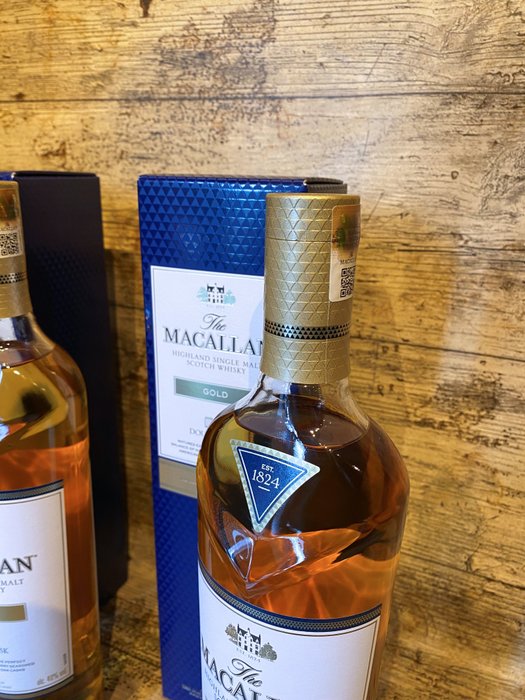 De Macallan Double Cask Gold maakt deel uit van ons Double Cask assortiment dat de klassieke Macallan stijl en de onmiskenbare zoetheid van Amerikaans eiken combineert. Lichte citrustonen en gekookte snoepjes die het gehemelte domineren voordat ze plaatsmaken voor kaneel, gember en geroosterde appels.