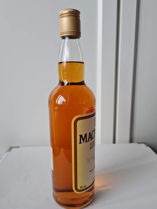 Een oude versie van MacPhail's 10 jaar oude Speyside Single Malt. Met schroefdop! Gebotteld door het bekende Gordon & MacPhail uit Elgin, Schotland. Gebotteld op 40%. Met originele doos maar die heeft betere dagen gekend, prijssticker bovenop verwijderd en gescheurd voorste plastic bijvoorbeeld.