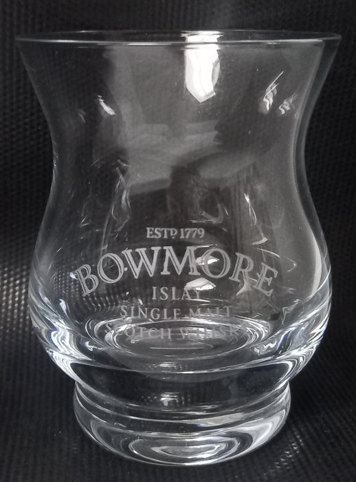 8x whiskyglazen individueel verpakt in een "Bowmore small batch whisky" doos