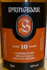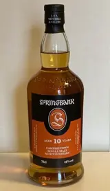 Beroemde Springbank-whisky. Springbank is de enige distilleerderij in Schotland die ter plaatse moutt, distilleert, rijpt en bottelt en staat hoog aangeschreven vanwege de consistente kwaliteit van zijn whisky.