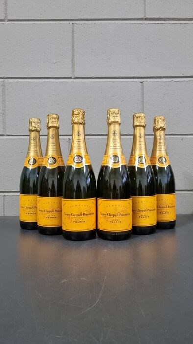 Zes zeer zeldzame flessen Champagne Brut Carte Jaune van Veuve Clicquot Ponsardin, een van de beroemdste maisons van de regio.