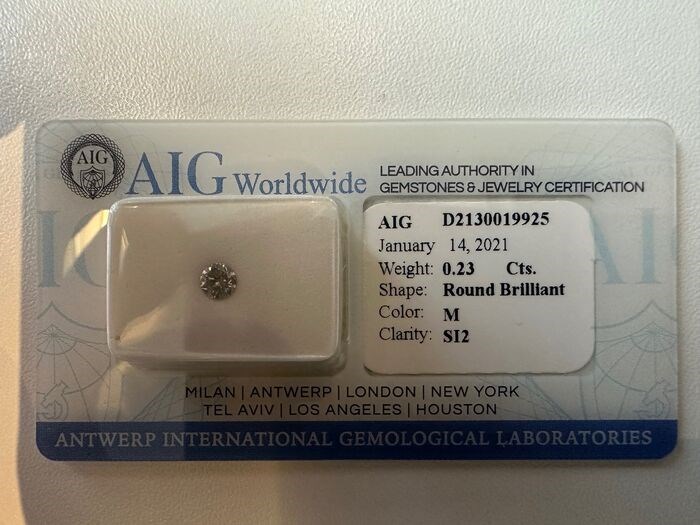 Diamant. 1 stuk. 0.23 karaat. Natuurlijk. Onbehandeld. Verzegeld. Certificaat van AIG.