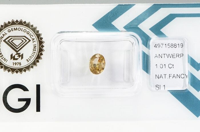 Brown Diamond Oval Shape Natural Fancy Color Los 1.01 Karaat SI1 Certificaat