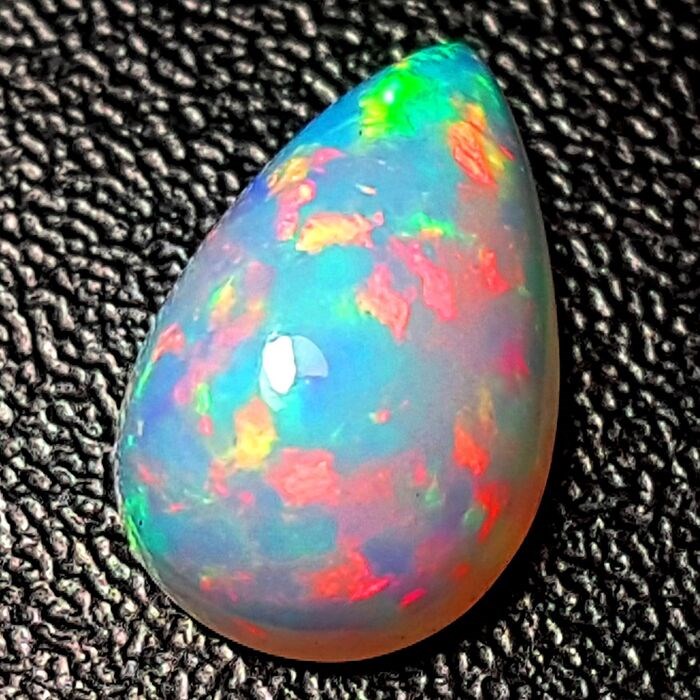 Een zeer mooie "Peer" geslepen Ethiopische Opaal van meer dan 3 karaat, met intense vuren op een ondoorzichtige en witte basis van zeer goede kwaliteit.