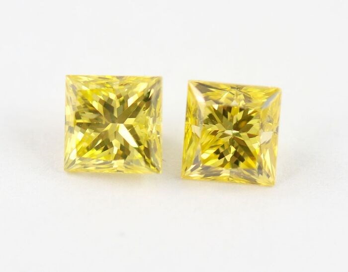 Deze verkoop is voor perfecte Fancy-diamanten die passen bij een paar levendige gele kleur Princess Cut
