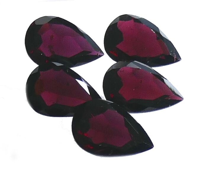 Grote facet geslepen edelstenen in de typische donkere kleur om als waardevol sieraad te monteren of om te verzamelen.