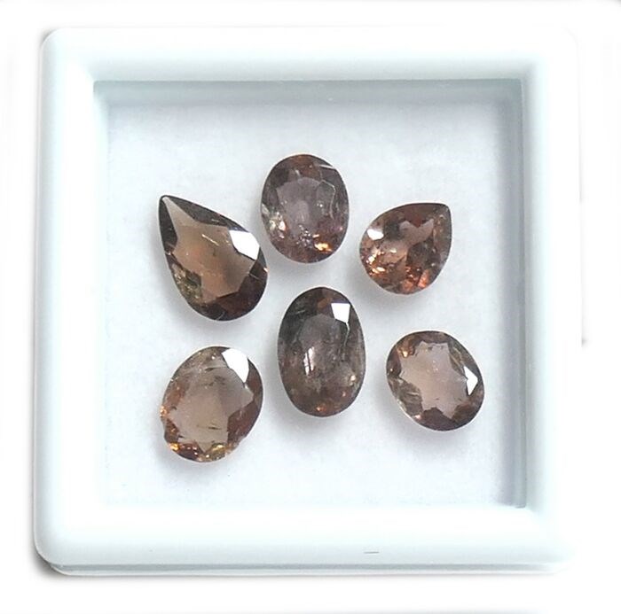Zeldzaam. De globale typelocatie is in Frankrijk, in Oisans in Isère. Axiniet uit Pakistan is groter en transparanter. Hier hebben we zes mooie unieke stukken in verschillende tinten. Aanvullen wordt steeds moeilijker omdat de aanbetaling heel weinig oplevert. Voor gemologische studie of voor verzameling. Zeldzame kans.