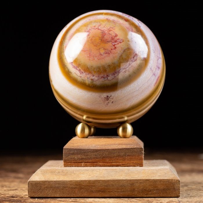 Exclusief gemaakt voor dit exemplaar, versterkt een met de hand gedraaide houten basis de schoonheid van de bol en plaatst deze op een nieuw niveau van aandacht.