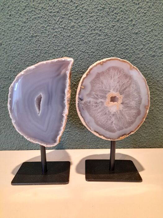 Agaat geodes natuurlijke kleur op metalen standaard -