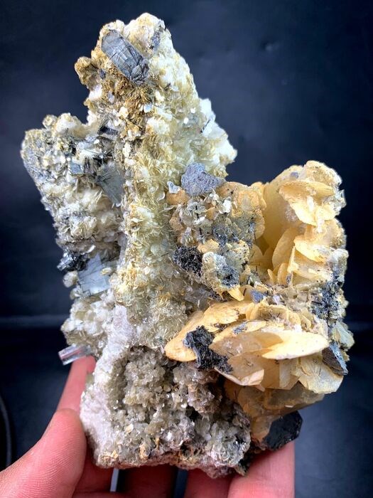 Natuurlijke goed afgesloten Aquamarijn Kristallen bos met calciet, zwarte toermalijn, albiet, mica en rutiel aquamarijn. Zeer zeldzame kristallen en het is erg moeilijk om zo'n schadevrij exemplaar in natuurlijke vorm te vinden. Zeer goede gelegenheid voor verzamelaars om deze schoonheid aan hun verzameling toe te voegen.