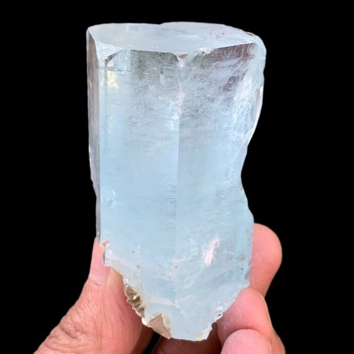 Een zeer mooie vette Aquamarijn uit Pakistan. Het kristal is glanzend en blauwachtig van kleur. Aan de onderkant is ook een vleugje mica te zien.