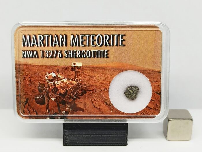In dit kavel veilen wij een prachtige meteoriet van Mars, en van hoge kwaliteit om toe te voegen aan uw collectie. Na alle uitgevoerde onderzoeken en analyses is het een Mars-meteoriet van het type Sergotite, mogelijk gecombineerd met NWA 13276.