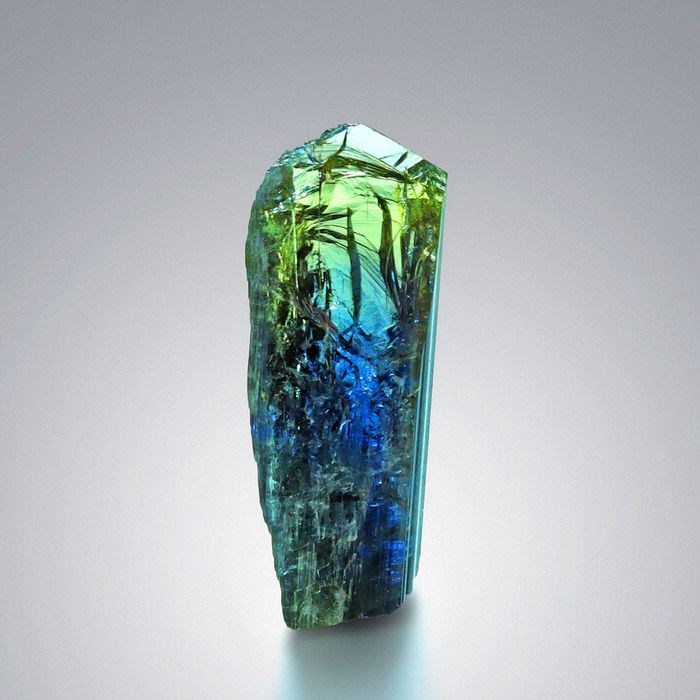 Het kristal vertoont blauwe en paarse tot roze en gele pleochrosim, gezien vanaf de voorkant en zijkanten. Perfect gemmy en scherp gekleurd doorschijnend kristal. geen schade. Perfect glazig kristal.