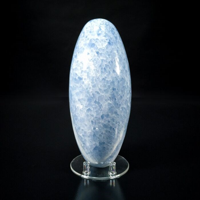 Fantastisch en groot blauw calciet mineraal bewerkt in de vorm van een lingam.
