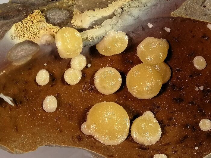 Een geweldige klassieker, mooie gele bolvormige calciet op basalt ex coll brusa