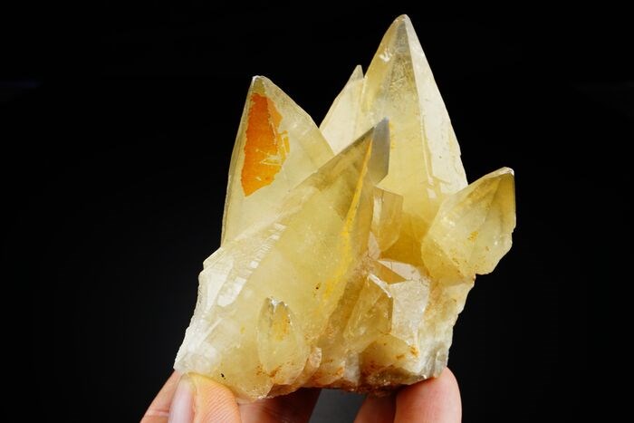 Calciet dogtooth kristal met levendige oranje kleur van nieuwe vondst.