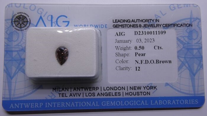 Diamant - 0.50 ct - Peer - Licht bruin oranje - P2