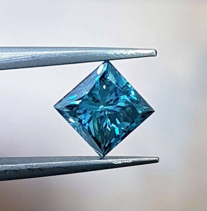 Diamant - 1.44 ct - Prinses - fancy levendig blauw - VS2