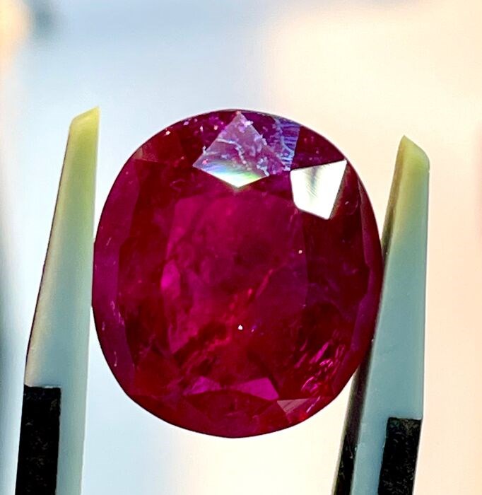 GRS-gecertificeerde natuurlijke robijn. Het heeft een zeer mooie donkerrode kleurtoon. het heeft insluitsels zoals zichtbaar op foto's. Het heeft een zeer goede maat, wat zeer zeldzaam is om te vinden in Jagdalek, Afghanistan.