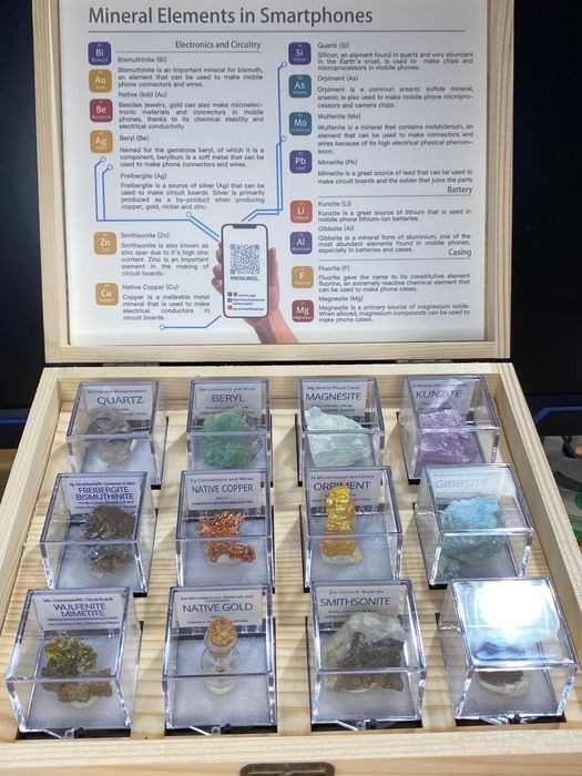 Mineralen zijn altijd bekend geweest om de perfectie van hun vormen en vooral om de magie van hun kristallisaties die altijd perfect zijn en altijd herleidbaar tot rigide geometrische regels. Deze collectie wordt vertegenwoordigd door 12 perfecte monsters van mineralen die essentieel zijn voor moderne elektronica en voor de constructie van smartphones. In een enkele collectie kun je de verschillende mineralen zien die essentiële elementen voor smartphones bevatten, in perfecte monsters die zijn gekozen vanwege hun kenmerken. De collectie wordt verkocht in een elegante houten kist en elk mineraal wordt geleverd