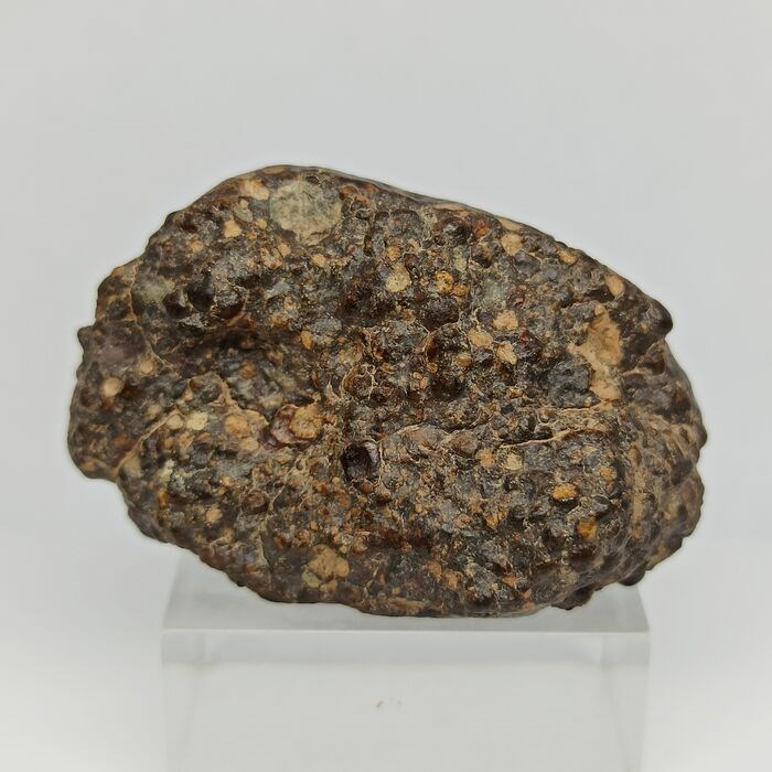 De meteoriet in dit kavel is een prachtig stuk koolstofhoudend chondriet van het type CR2, verworven in Algerije in 2022 en officieel geclassificeerd onder de naam Erg Chech 008. Het heeft een goede maat en een georiënteerde vorm, iets wat zeer gewaardeerd wordt door verzamelaars.