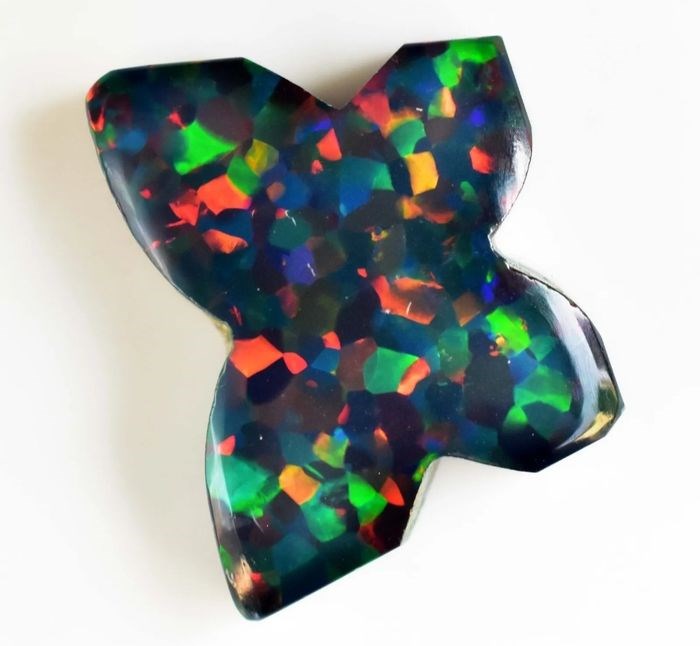 Ik bied u een opaal op onyx aan in de vorm van een sublieme vlinder van 19,27 karaat met prachtige kleuren.