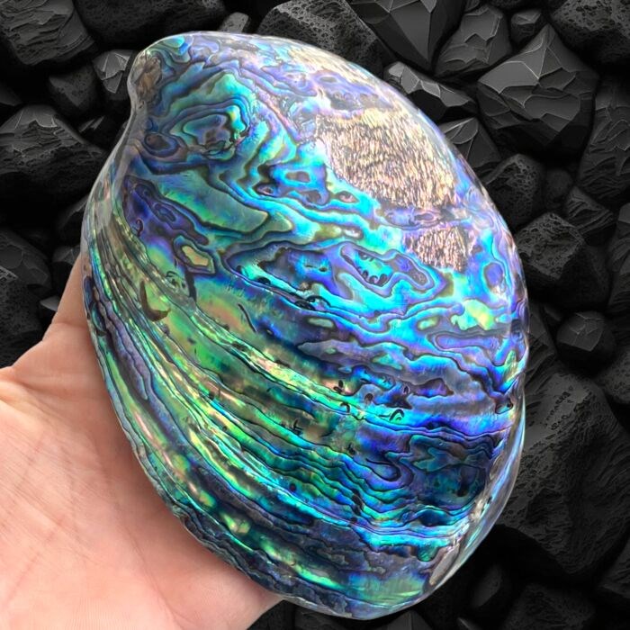 Buitengewone Abalone-schelp in veelkleurig parelmoer, de Haliotis Iris-soort is zeker een van de meest esthetische parelmoeren schelpen, zijn verbazingwekkende kleuren variërend van groen tot blauw tot paars, contrasterende maar zwarte aftekeningen.