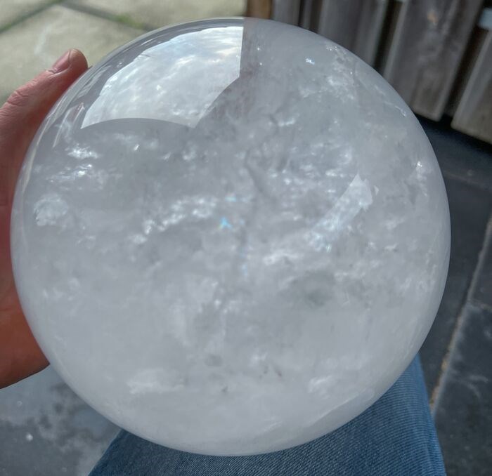 Mooie gepolijste AAA bergkristal uit Brazilie hoog transparant perfect rond met regenboog irriserend super.