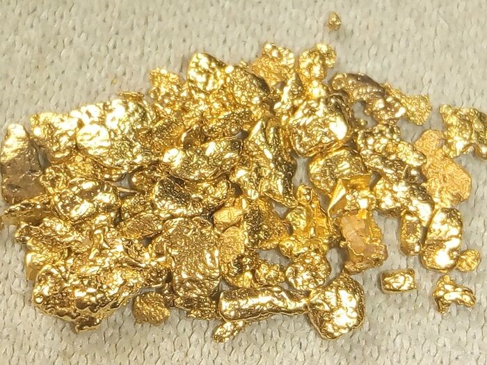 Buitengewone fijne goudklompjes met een gewicht van 0,55 g 21-22 k uit Yukon, VS. Het zijn zeer fijne klompjes van de hoogste Amerikaanse kwaliteit en daarom moeten ze bij het uitpakken voorzichtig worden geplaatst, eventueel op een doek. Ze zijn echt heel mooi en zeldzaam om te vinden en worden gewaardeerd om hun helderheid en schittering. Mis deze echt unieke nuggets niet voor een paar weken. De goudklompjes zijn nu zeer zeldzaam en hebben een waarde die 5 keer hoger is dan het commerciële fysieke goud dat in omloop is. Het verzamelen van een kleine schat in goudklompjes is een veilige investering tegen economische crises. Elke kleine nugget is uniek en origineel.