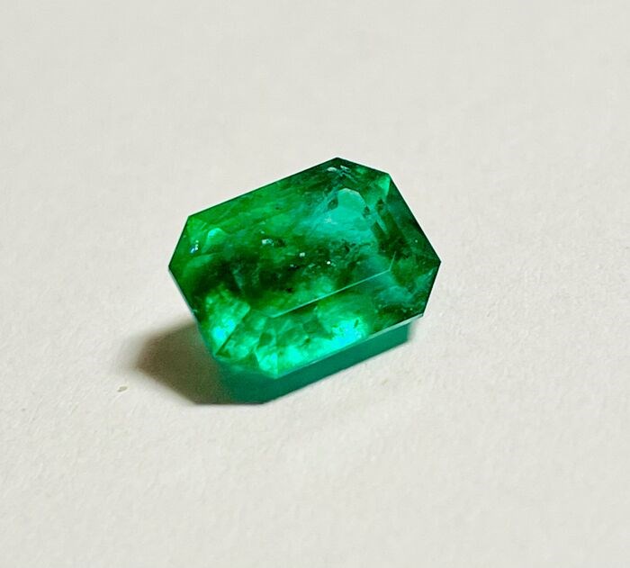 GRS Zwitsers gecertificeerde natuurlijke smaragd. De transparante edelsteen met volle glans en insluitsels in zijdevorm kan worden verbeterd door olie en insluitsels zijn niet zo zichtbaar als foto's. Het heeft een pure groene kleur, afhankelijk van licht en scherpe diepgroene kleurzonering is duidelijk zichtbaar in het midden van de edelsteen. Het is vrij zeldzaam om plus 2 karaat ongeoliede schone edelsteen van deze oorsprong te vinden.