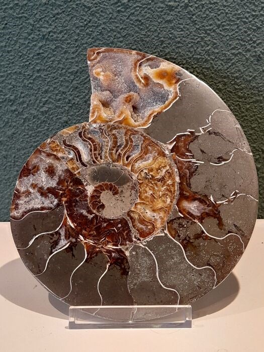 Grote versteende ammoniet op standaard - 18×1.5×15 cm - 517