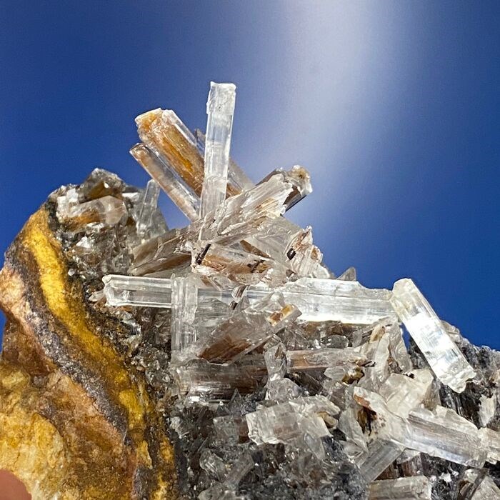 Een zeer uniek stuk met goed gevormde kristallen, zichtbaar op de limonietmatrix. Moeilijk te vinden op de huidige markt, uit de collectie Brusa, verzameld in de jaren 70-80. Voor verfijnde en veeleisende verzamelaars.