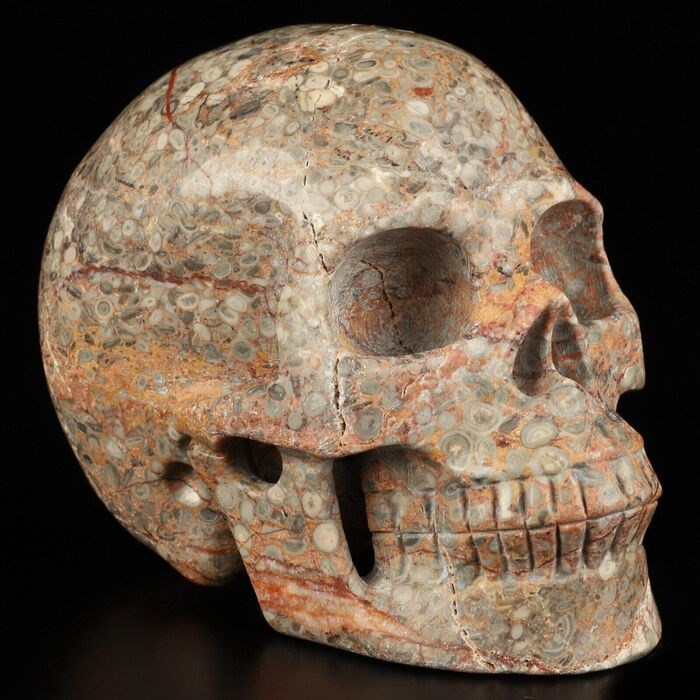 Magische schedel versteend crinoïde gesteente van fossiele mariene micro-organismen