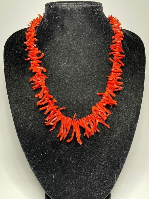 Halsketting met franjes van mediterraan bloedkoraal in verschillende maten, volledig met de hand gemaakt door deskundige vakmensen van Torre del Greco, gemonteerd met een sluiting van 925 zilver.