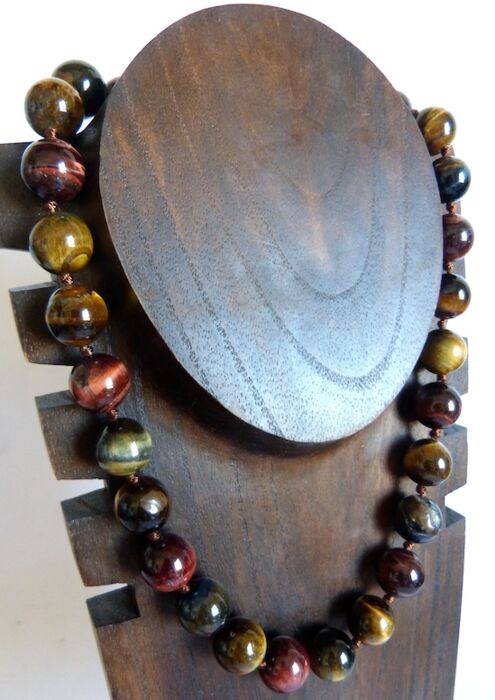 Bijzonder collier van tijgeroog bollen met prachtige gouden en roodachtige kleuren.