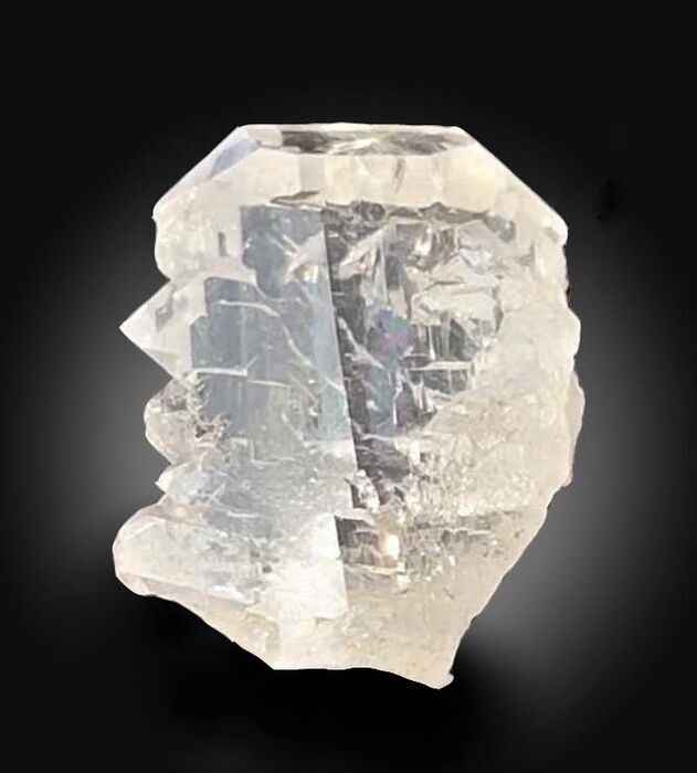 Dit is waarschijnlijk een van de beste gwindels die tijdens de eerste vondsten uit de Shalman-mijn kwamen. Hoewel de meeste gwindels die uit Pakistan komen klein en niet erg hoog zijn, is deze veel meer "antenne". De twist is geweldig, maar het is moeilijk om het met foto's te laten zien. Zoals de meeste exemplaren uit deze plaats, heeft het wat kleine beschadigingen en is de achterkant vrij mat. Sommige insluitsels, misschien rutiel, zijn ook binnenin zichtbaar.