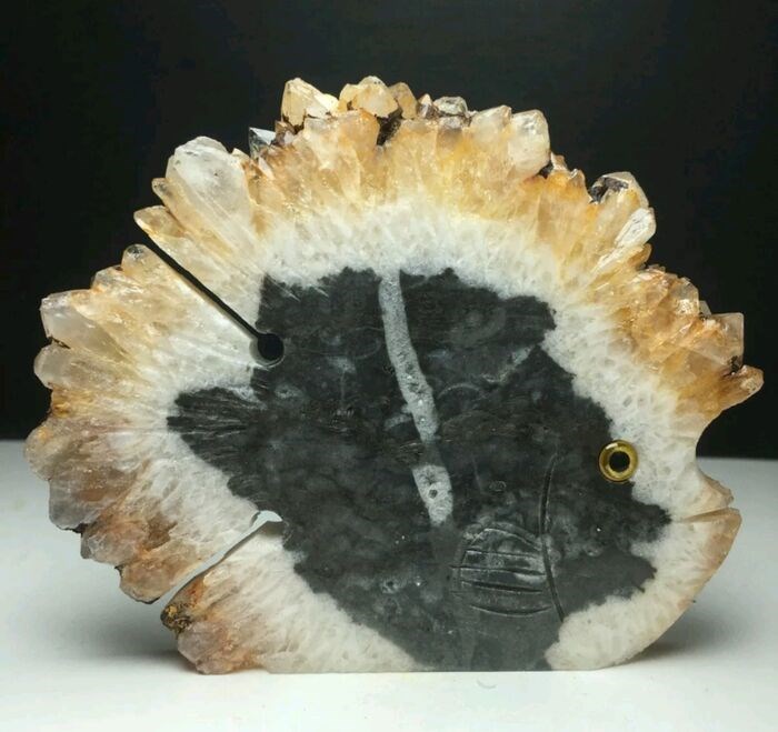 Schitterend handgekerfde vis met mooie gave kristalpunten als vinnen! Een echte eyecatcher!