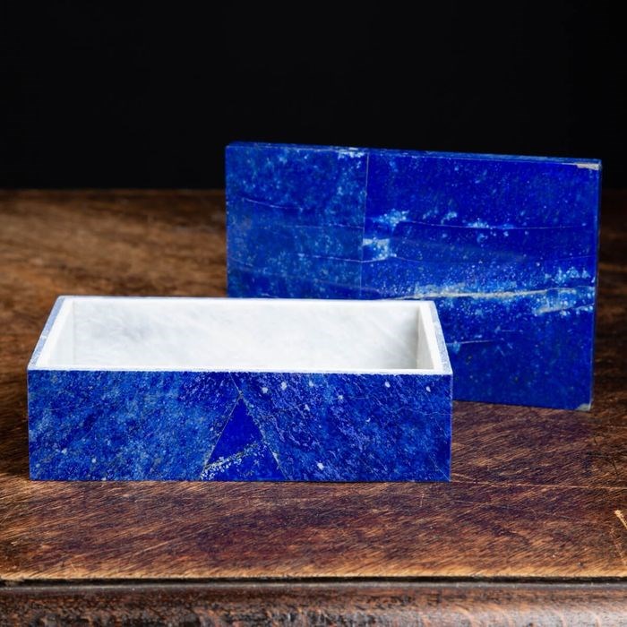 Een fijn doosje gemaakt van lapis lazuli van eerste keuze.