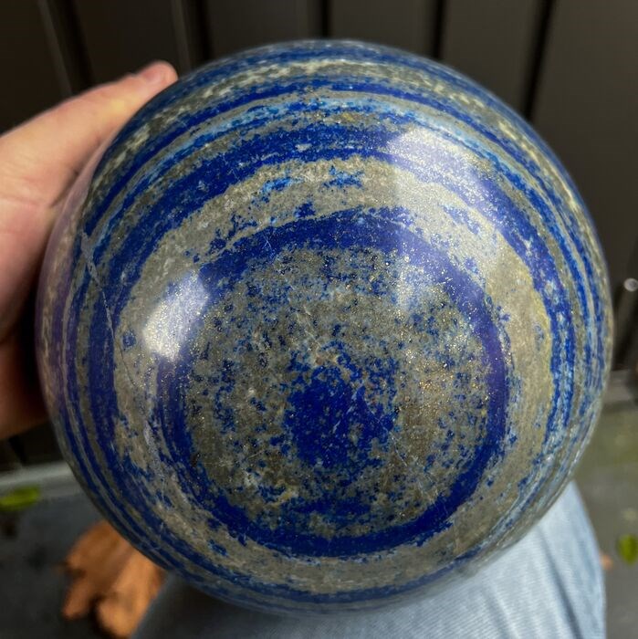 Large Lapis Lazuli sphere met flinke Pyriet lijnen.