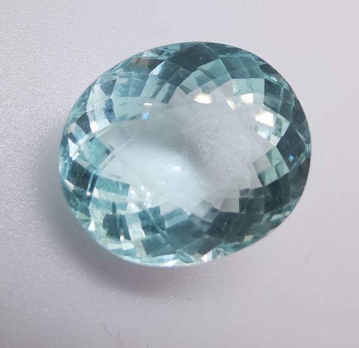 Loupe zuivere intense Light Greenish Blue , 10.14 carat, ovaalgeselepen natural Aquamarine.