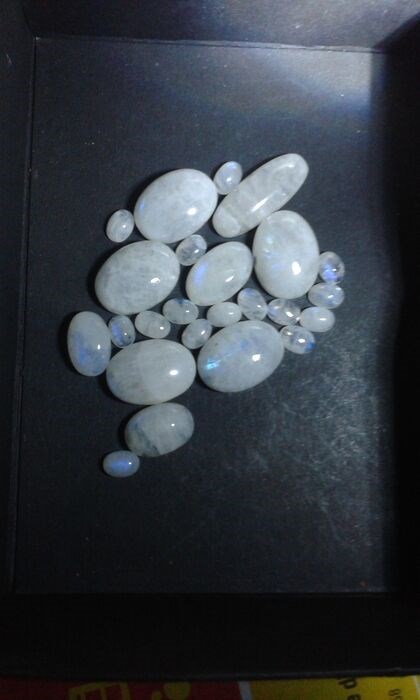 Witte Pietre di Luna met lichte hemelsblauwe reflecties