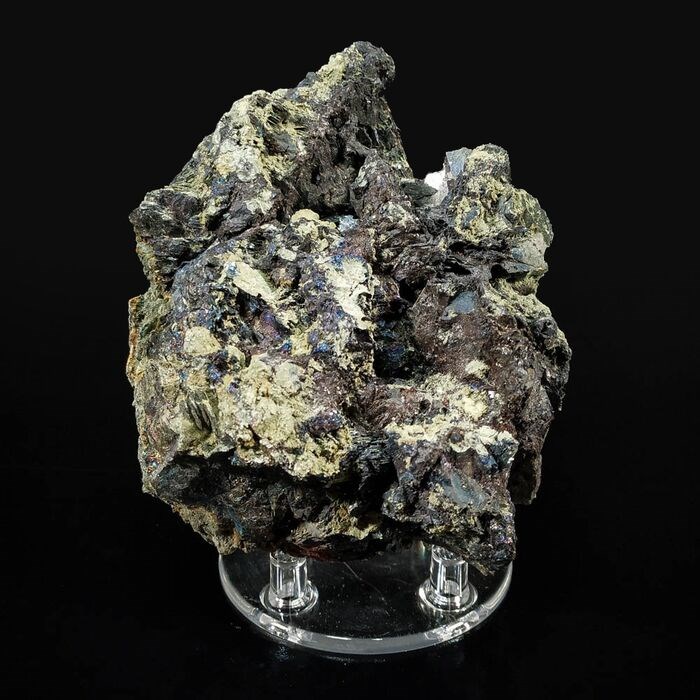 Prachtig iriserend lamellair hematiet geheel bedekt met groene vesuviana. Dit mineraal komt van het eiland Elba in Italië. Unieke en briljante kleuren zoals afgebeeld. Hematiet is een nuttig kristal om de concentratie te versterken, pijn en spierspasmen te verlichten en de ontgiftende werking van de uitscheidingsorganen te bevorderen. Hematiet is ook bekend als een bloedsteen en is nuttig voor het versterken van de longen, lever- en niergezondheid en het ontgiften van het lichaam.