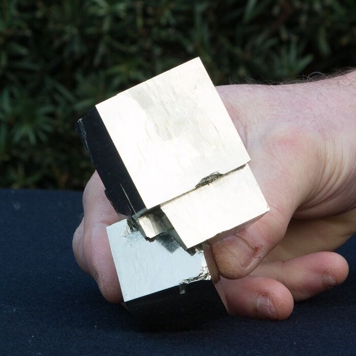 Mooi decoratief pyriet cluster met schitterende glanzende kubussen van museum kwaliteit. Het cluster bevat in totaal 3 stuks kubussen.Een prachtig cluster met erg grote kristallen. Het grootste kristal is maar liefst4 cm. Dit is een zeer zeldzame variant kristallen.