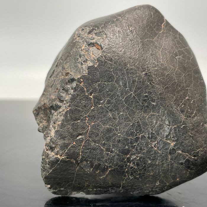 Het stuk dat nu te zien is, is een magnifieke Eucrite, waarvan de samenstelling kan worden gewaardeerd, evenals de fusiekorst.