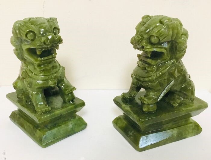 Paar Foo leeuwen gemaakt van natuurlijke groene jade.