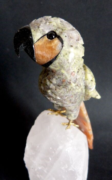 Papegaai van verschillende mineralen op bergkristal - 17 x