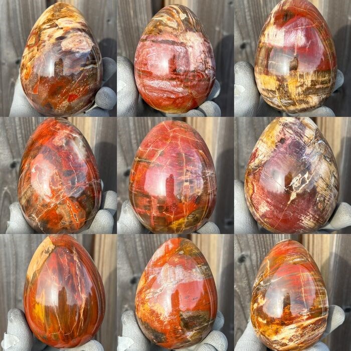 9 x massief exemplaar versteend hout sculptuur met natuurlijke kristallen neemt je mee terug in de tijd.
